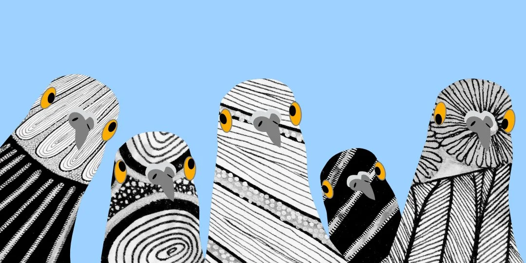 Mini Textile prints of my “Animal Folk’ pigeons are now available as art cards.